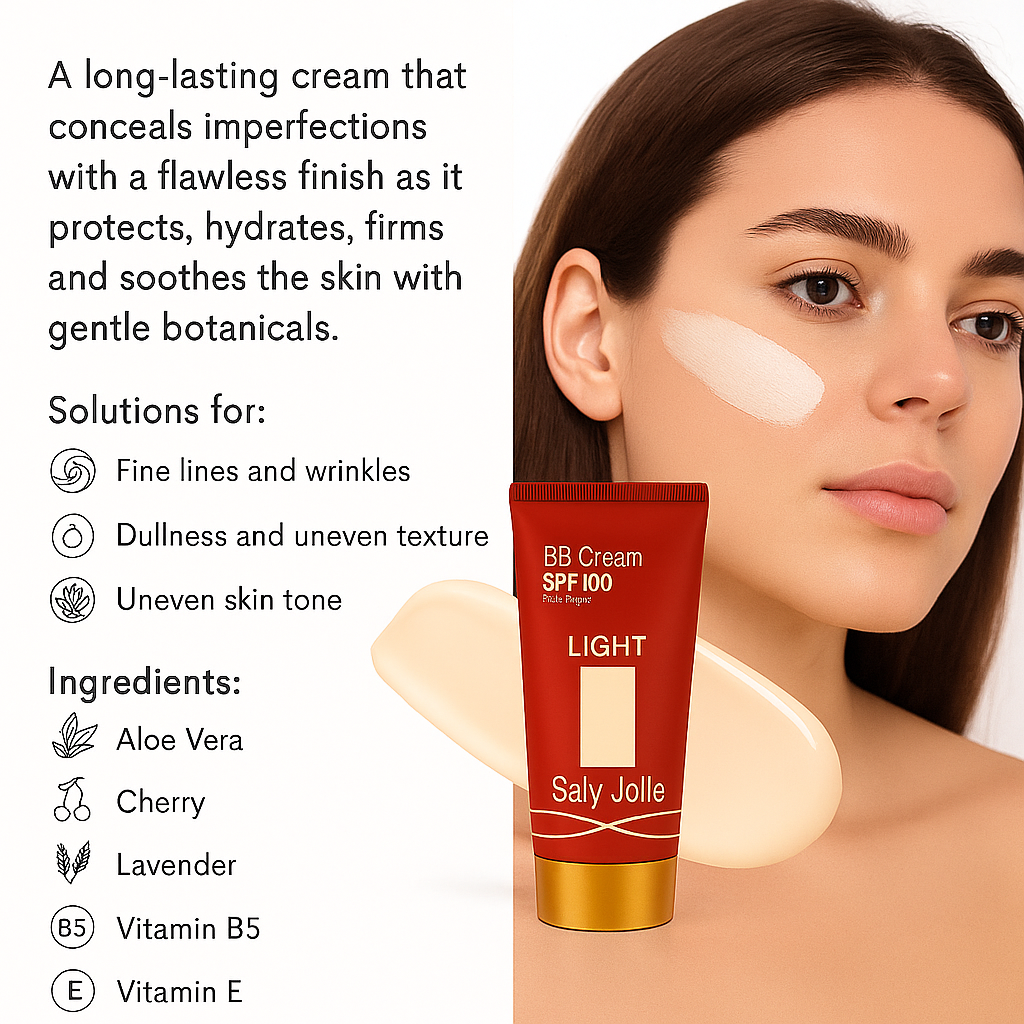 كريم يدوم طويلاً يخفي العيوب بلمسة نهائية خالية من العيوب حيث يحمي البشرة ويرطبها ويشدها ويهدئها بمستخلصات نباتية لطيفة. كريم بي بي نقي 100% هذا بمزيج مرطب من العناية بالبشرة وكريم الأساس وعامل حماية من الشمس 100* وهو مثالي لمن لديهم بشرة حساسة. تم تصميمه ليناسب درجات البشرة الفاتحة إلى الفاتحة، ويمنح تغطية ناعمة من المتوسطة إلى الكاملة وهو مثالي لمن يستخدمون منتجات المكياج النقية 100%. تم تركيبه باستخدام آلاف الصبغات العاكسة للضوء مع فاكهة خارقة قوية، هذا المنتج الكريمي متعدد الاستخدامات مصمم ليترك البشرة متألقة. يحمي البشرة من أشعة UVA وUVB. حلول لـ: - الخطوط الدقيقة والتجاعيد - البهتان والملمس غير المتساوي - لون البشرة غير الموحد المكونات: الصبار، الكرز، زيت جوز الهند، زيت الجوجوبا، اللافندر، إكليل الجبل، زيت دوار الشمس. مستخلص أوراق الصبار (عصير الصبار العضوي)*، ماء زهرة القنطريون السماوي (زهرة الذرة) (مشتق من زيت جوز الهند)، سوربيتان سيسكويوليت (مشتق من السكر)، ثاني أكسيد التيتانيوم، جلسرين نباتي، حمض دهني (مشتق من جوز الهند)، سيليكا مائية، ستيرات المغنيسيوم (مشتقة من الملح)، زيت بذور الجوجوبا، زيت اللافندر، مستخلص أوراق إكليل الجبل، زيت بذور الكرز الحلو، مستخلص ثمار الرمان، زيت بذور دوار الشمس، روبوس إيداوس زيت بذور (التوت).