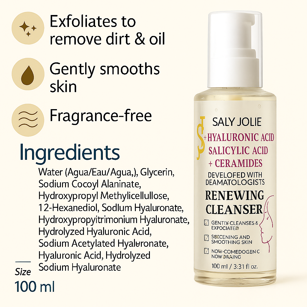 مع حمض الساليسيليك والسيراميدات و8 أحماض هيالورونيك مختلفة وماء زهرة البابونج وحمض الستريك المجدد للبشرة . تم تطويره بالتعاون مع أطباء الجلدية، تركيبته الفريدة -