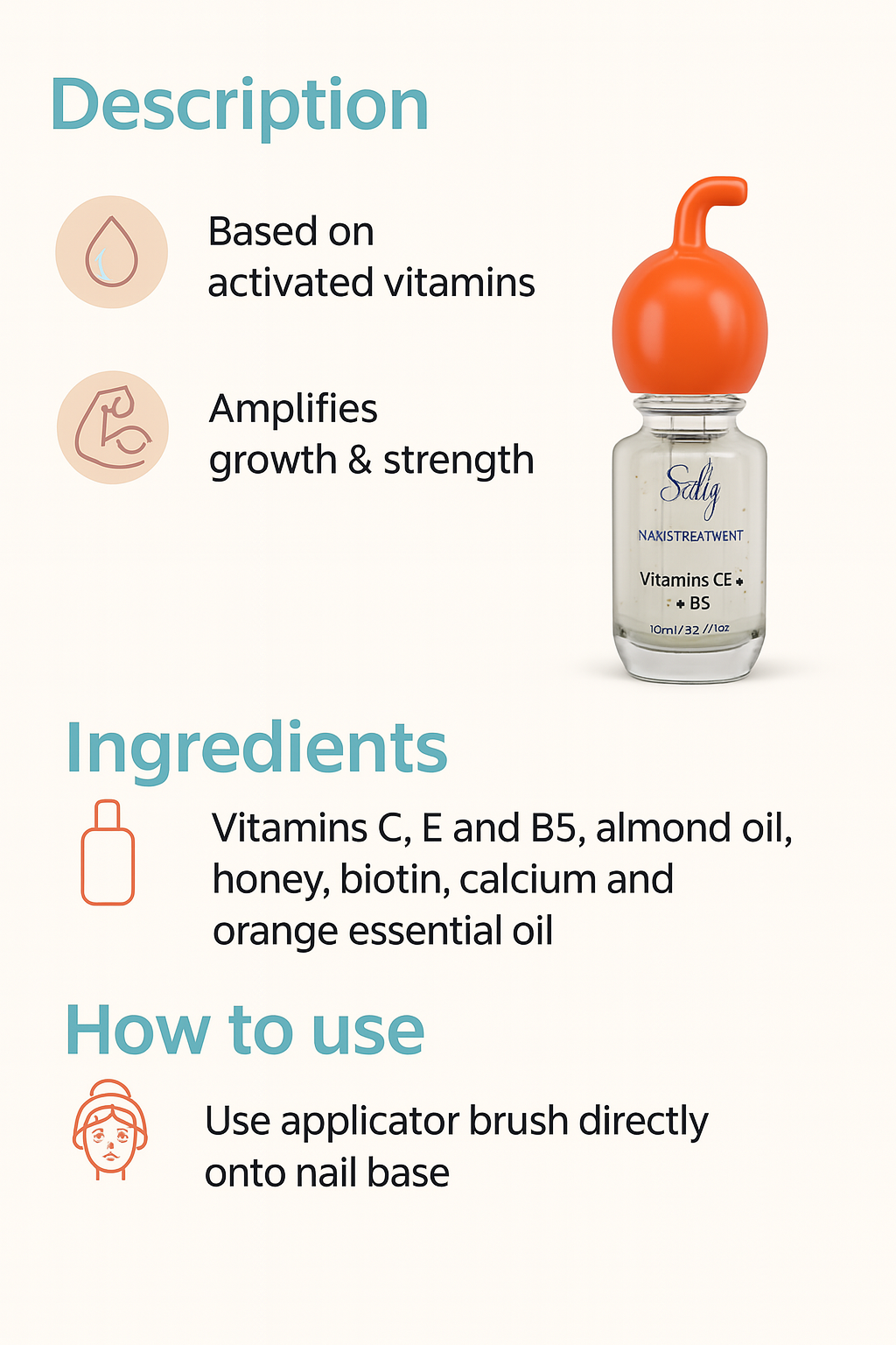 سيروم فيتامين سي ليس طلاء أظافر، بل سيروم للأظافر! مُركّب من فيتامينات C وB5 وE المُنشّطة، بتركيبة خاصة تُتيح للمنتج التغلغل في الظفر وتعزيز نموّه.