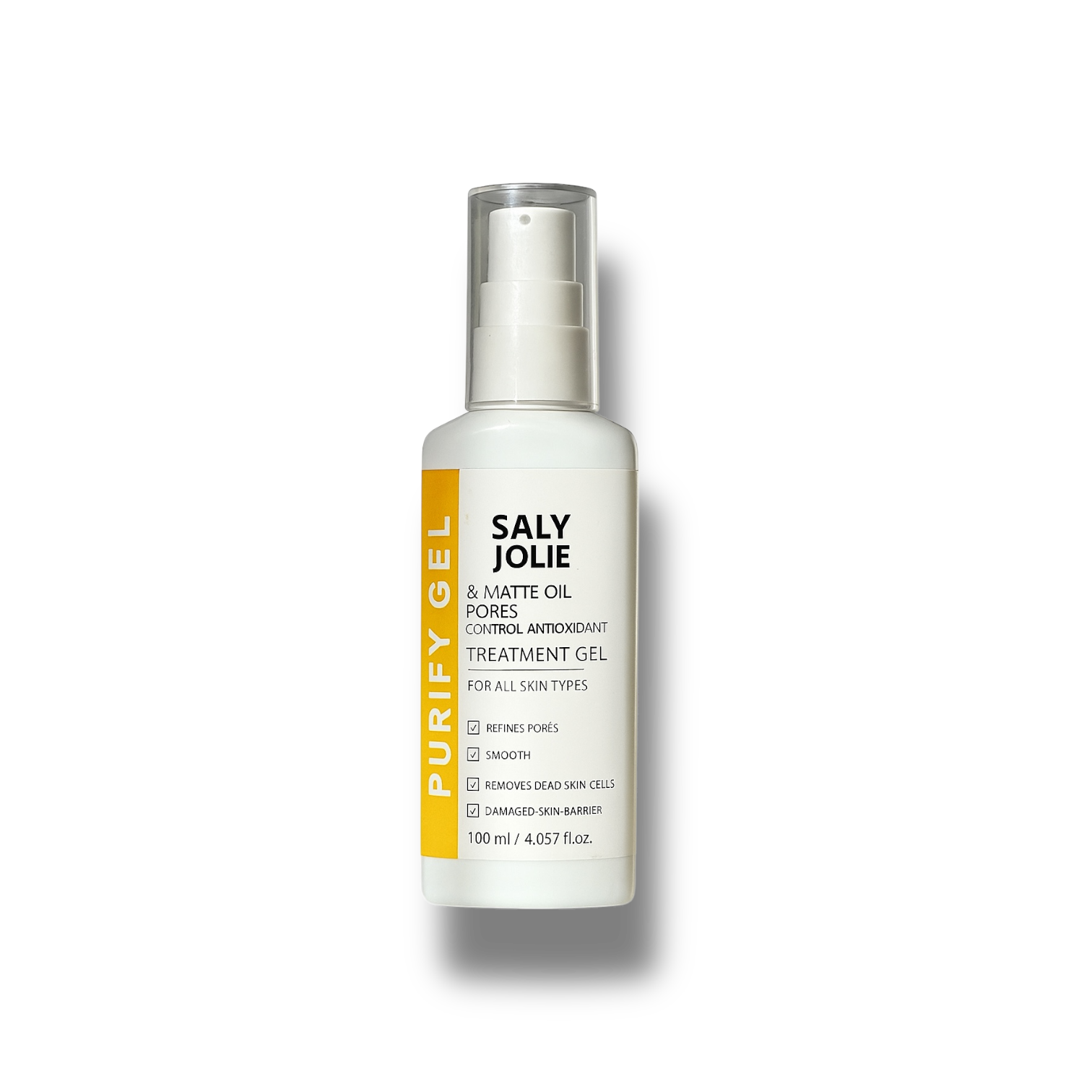 - Apply a small amount of Saly Jolie Purify Gel evenly all over your face.